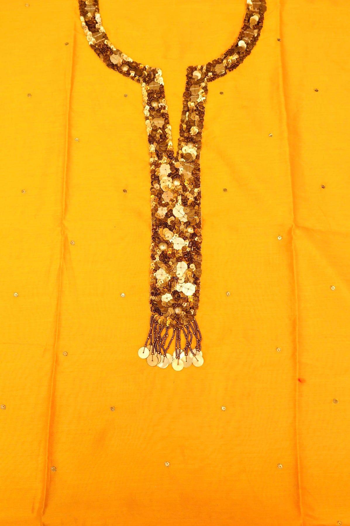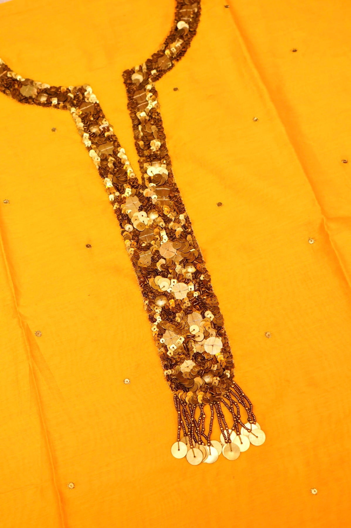 Yellow Pure Chanderi Silk Suit Set with Antique Embroidery