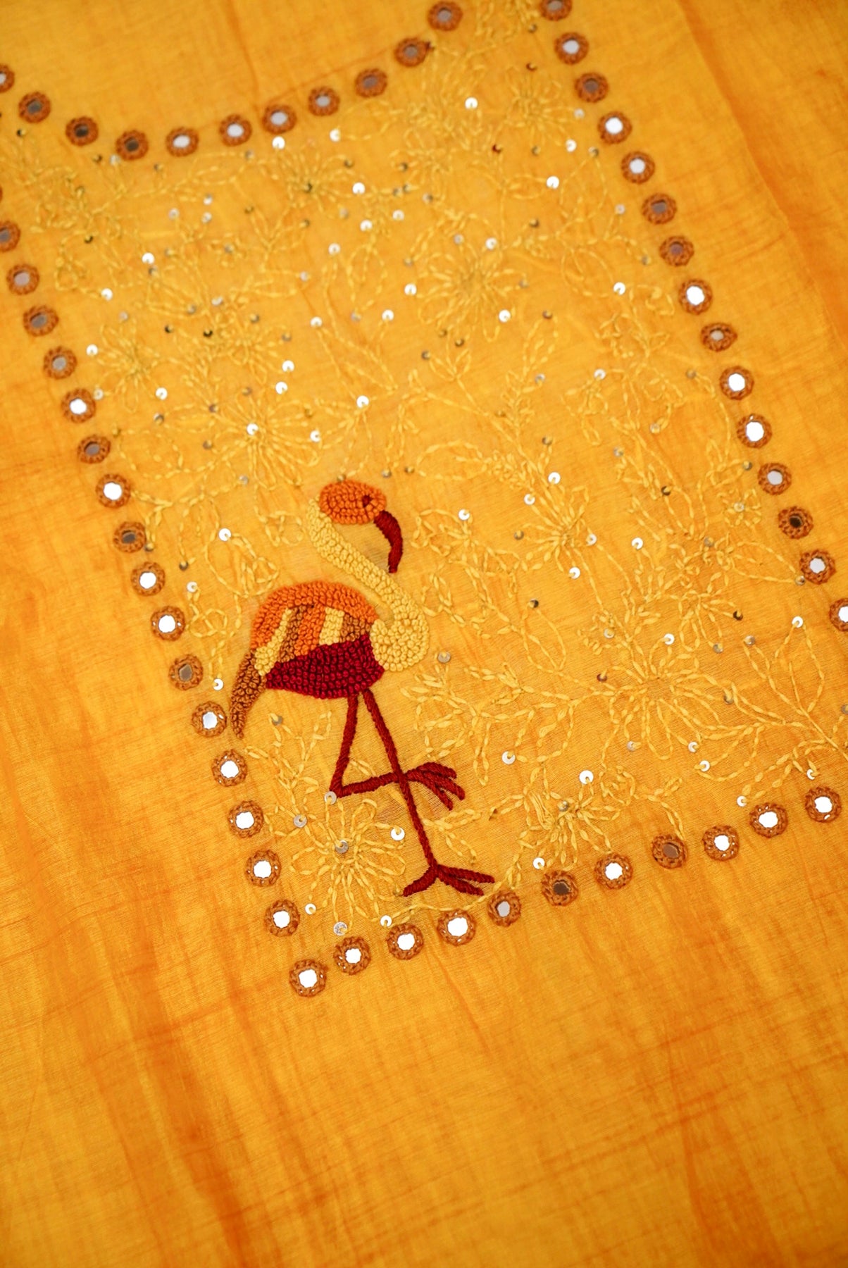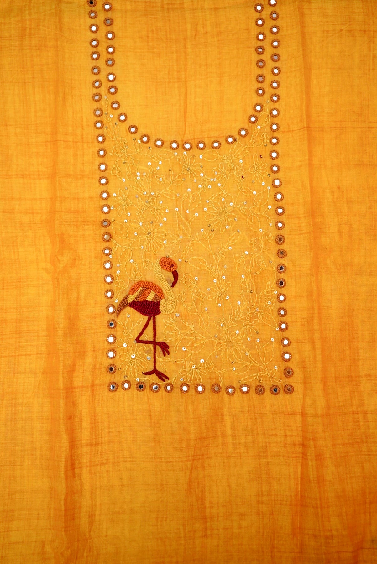 Yellow Pure Chanderi Silk Suit with Kantha & French Knot Embroidery